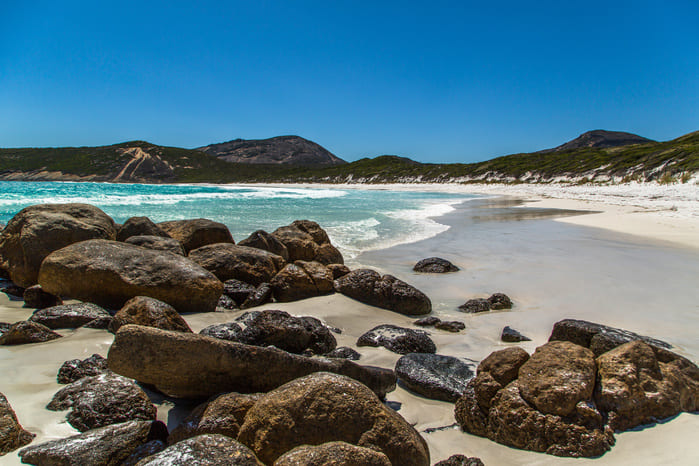 Hellfire Bay est une belle plage de sable fin isolée au cœur du Cape Le Grand National Park, un parc national situé en Australie-Occidentale, à 631 km au sud-est de Perth, et à 56 km à l’est de la jolie ville d’Esperance.