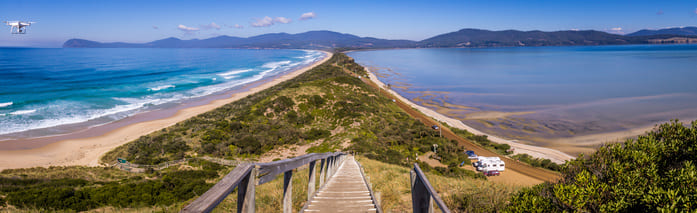 Au sud de la Tasmanie, l’île de Bruny est en fait composée de 2 territoires reliés par un isthme étroit appelé « The Neck ». La partie sud de Bruny est plus montagneuse avec des falaises qui plongent sur la mer et des forêts bordées de fougères. Les sentiers pédestres sont parfaits pour les randonneurs jusqu’à Adventure Bay. Les amateurs de plages pourront se baigner, faire du bateau, du surf, du kayak ou pêcher le long de Cloudy Bay. Le Cloudy Lagoon offre des eaux cristallines pour plonger avec un tubas uniques