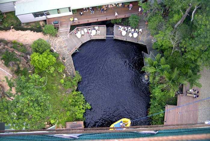 Le bungy jumping est un moyen de faire monter l’adrénaline qui sommeille en nous pour voir ce que ça fait de se jeter dans le vide. La ville de Cairns dans le Queensland a fait construire la Cairns Bungy Tower au-dessus d’un bassin.